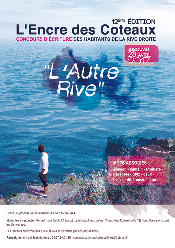 Affiche du concours d’écriture de la Rive droite bordelaise pour le mensuel l’Echo des Collines. Photographie et photomontage sur Photoshop